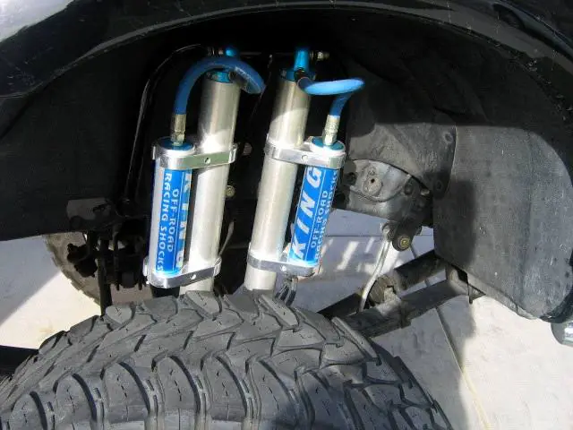 Shocks: dual king shocks all the way around truck.