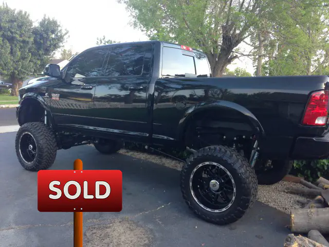 2012 Dodge Ram 2500 diesel 4x4 Black exterior and Black leather interior. Kelderman 8-12" air ride suspension. 37x13.50 toyo mud terrain tires on 22" wheels. Edge controller with custom mount. Amp steps and painted bumpers and grill to match truck. 40" tires also available with truck. excellent condition. Brand new with only 12,000 miles. Truck brand new was over $60,000. Add on components are worth $25,000. Really a beautiful truck at a great price.