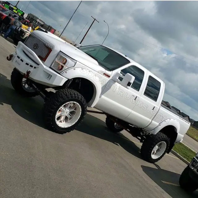 Fully loaded platinum with leather and sunroof. The truck is pearl white with corvette atomic orange accents (burnt orange). Truck was built by speedtech and performance plus. All paint work was done by creative concepts (builder of F00 snakebit) Truck has 27000 miles on it. Full egr and dpf delete. 5" turbo back straight pipe to 7" axle dump. Custom tuned with sct by speedtech. AFE momentum HD cold air intake. Royalty core custom made grill. Powder coated Fusion front and rear bumpers with rigid led color matched lights. Front and rear of the truck are wrapped in clear 3M to protect the paint. Fusion front and rear color matched bumpers with Rigid Lights in both front and rear. Monster hook color matched hooks front and rear. Plain and simple color matched headlights, tail lights, third brake light, side marker emblems that light up. AMP research power running boards. Bushwacker fender flares with bolts color matched to detail. Platinum letters color matched. All mirrors, grill and handles color matched. 12" bullet proof suspension lift all powder coated to match. AFE color matched powder coated rear diff cover. RBP blade 24" rims painted by Lexani and featured in their magazine to match every detail on the truck. 40" interco SS M16 tires. Truxedo low profile tonneau cover, spray in bed liner. In dash bypass module to run maps as you drive. The truck shows way better in person, turns heads wherever you go.