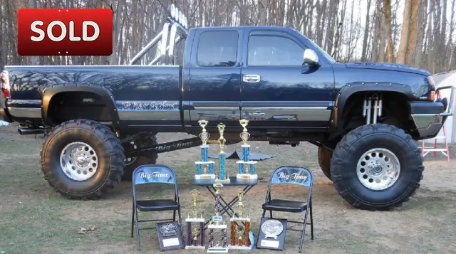 Or MAKE AND OFFER IF you Want to hit it Big? Then don't miss out on the sale of "BIG TIME" 2005 Chevy Ls 2500 HD Monster Show Truck. Not only will you get to own this beautiful truck but you will get every single one of its award winning trophies and enjoy it all with matching chairs and table. This truck is worthy of showing it off to your friends while having other truck owners envy this beauty with its very own light shows! The truck is in perfect shape and ready for the next show.This is a once in a life time chance to own this awesome multi-winning show truck. "BIG TIME" has been very well taken care of. It has always enjoyed the luxury of the garage and has never had to endure snow or driven off road. more pictures on request pictures at http://youtu.be/oGRStvRI2YU pictures at http://youtu.be/SOuT78U4IPQ Videos at: http://youtu.be/Eqz9C91jH6U Extended cab 8' Box Tilt,cruise,pw,pl, ac rear heart and ac rear window defroster 6.0 vortex performance chip,B&N intake Auto with B&M shift kit Solid front axle swap dyna trac hi pinion dana 60 lockout hubs with push button 4x4 4.88 gears, 14 bolt full floater rear axle with disc brakes and E brake crossover steering with off road unlimited ram assist steering front sway bar stainless steel front brake lines 6" custom alum rear drive shaft 17" lift (all suspension) 20" eagle extreme alloys Michelin x 395/85 R 20 Radial Military tires 8 Bilstein remote reservoir shocks custom stainless steel front u bolt cover 12" electric fold down steps with light Bushwhacker fender flares Feb tech custom front bumper / grille guard with 3 hella lights Rhino double chrome roll bar with light bar with 5 hella lights Bed rug with small tool box Back up camera Back up lights Remote start and alarm Train Horn Chrome bed rail cover Chrome tailgate cover Led Third brake light custom tinted windows with flames Lund eclipse hood scoops Stainless steel accent panels Underneath led lighting with strobes Cat back custom dual exhaust with chrome mufflers and tips custom painted dash console and door panels custom blue neon inside truck Ken wood CD DVD USB and navigation with 2 massive audio amps with 10" sub-woofer Orion front and rear door speakers "awesome" If you have any question please feel free to email me. Thanks and good luck.